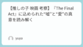 • 観客に感情の処理を委ねる構造が、深い考察を促す。