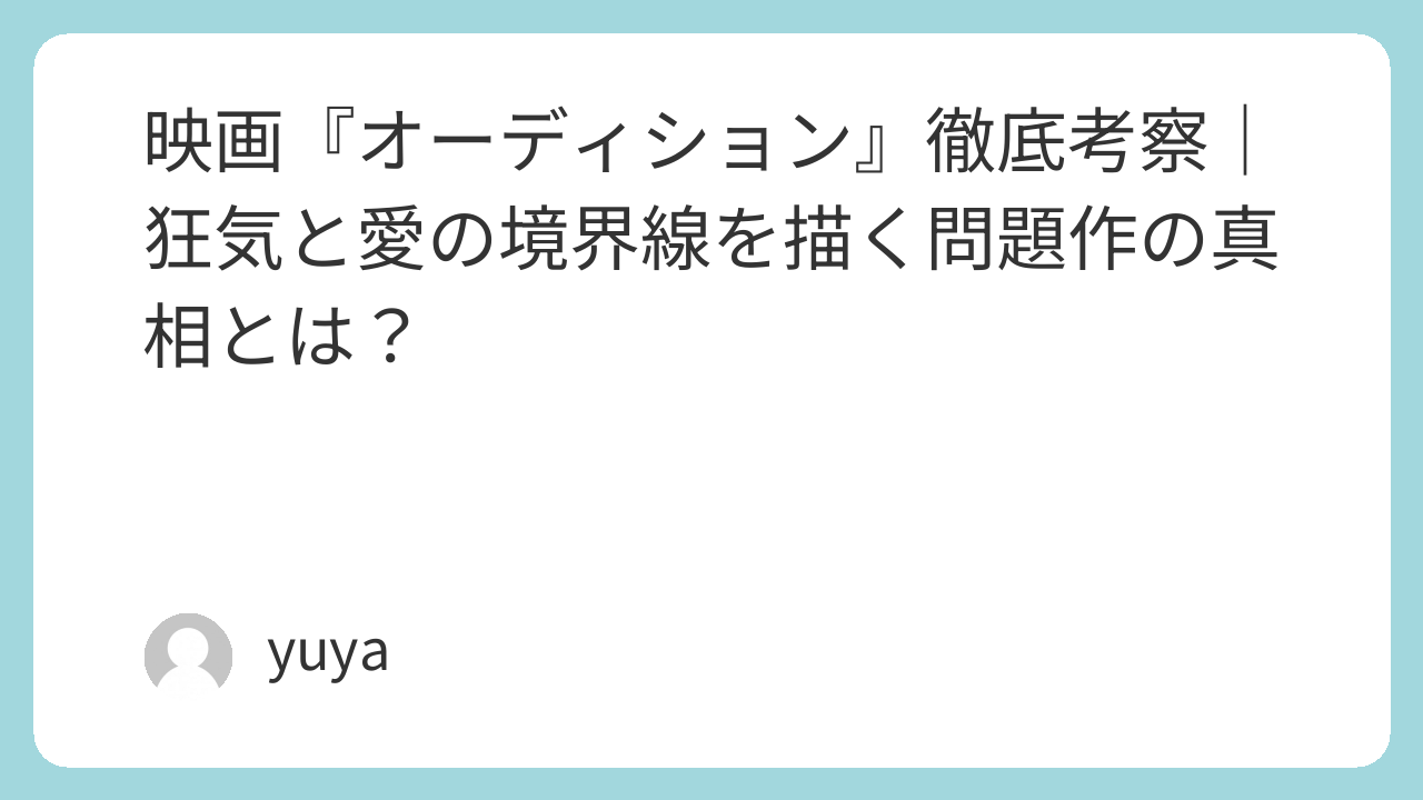 本記事では、『オーディション』に内包されたテーマや象徴表現、キャラクター造形を深掘りし、その“狂気”の本質に迫っていきます。