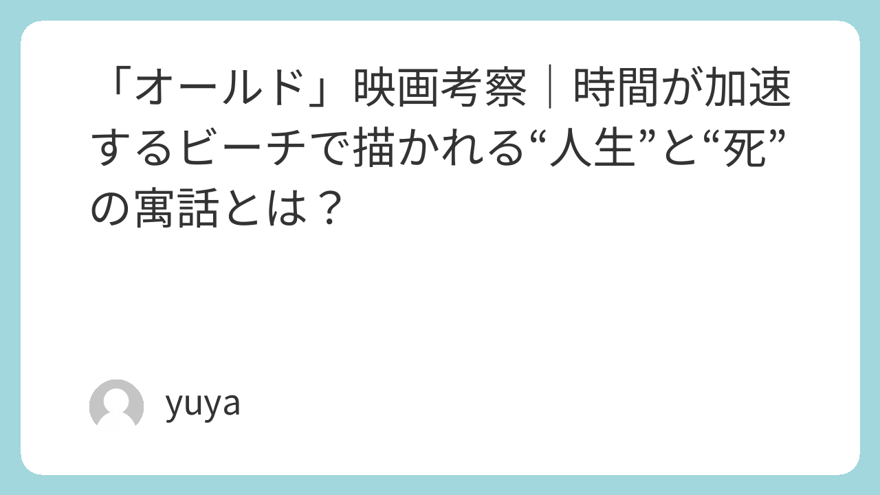 時間が圧縮された世界で、私たちは何を選び、誰と過ごすのか──。映画『オールド』は、そんな深い内省を促す作品として、今後も語り継がれていくに違いありません。