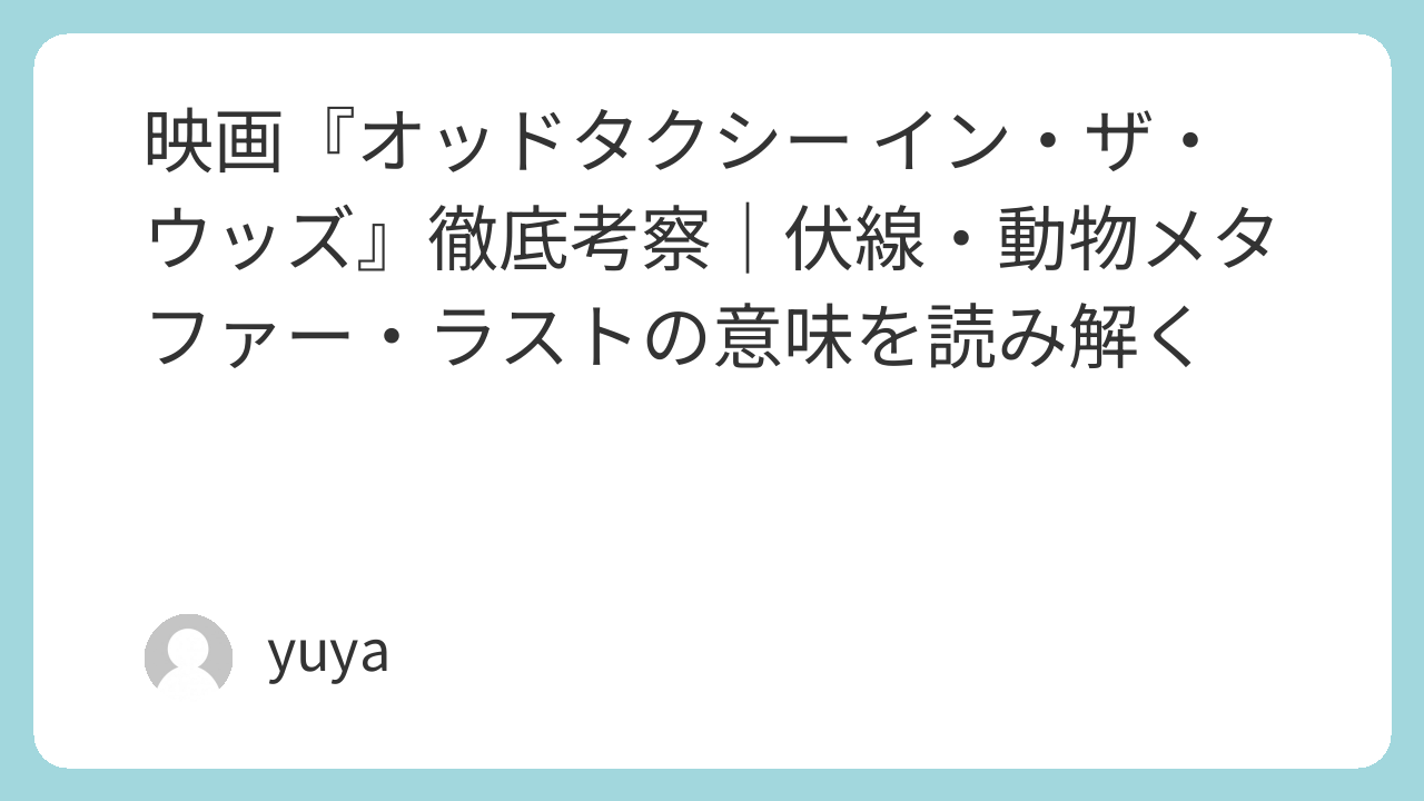 本記事では、映画『オッドタクシー イン・ザ・ウッズ』を軸に、キャラクター描写、伏線、テーマ、構成の特徴などを徹底考察していきます。物語の奥深さを改めて感じていただけることでしょう。