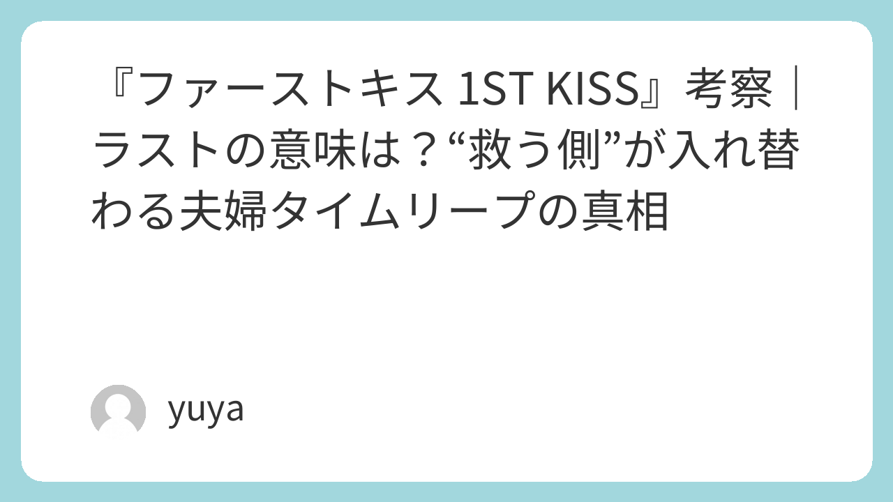 - タイトル『ファーストキス 1ST KISS』の意味:なぜ“最初”に立ち返るのか