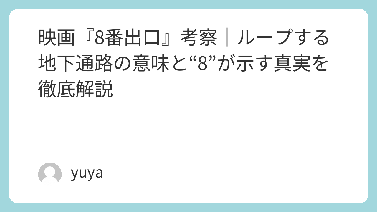 物語の軸は「出口8へ向かうこと」ですが、何度も現れる「8」の数字が、単なる案内表示なのか、それ以上の意味があるのかを考えさせられる構造になっています。
