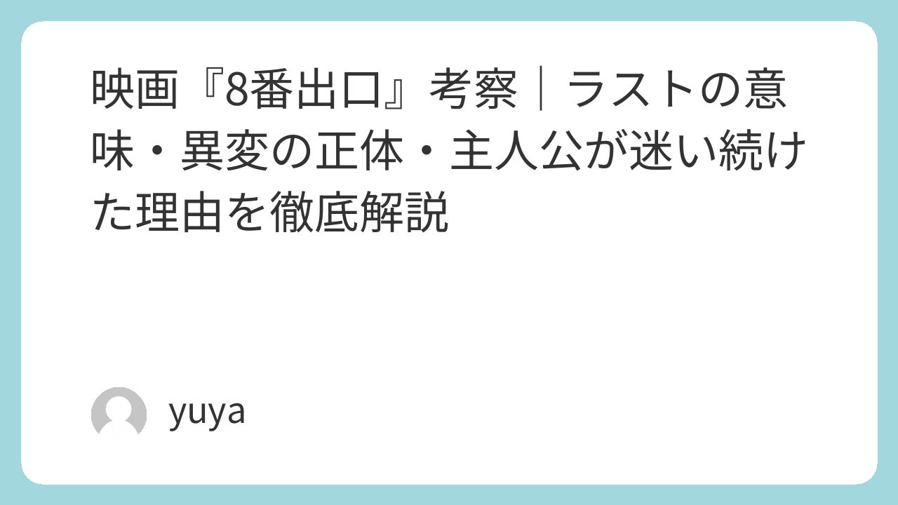 この記事では、映画『8番出口』のあらすじや原作ゲームとの違いを整理しながら、タイトルの意味、異変の正体、ラストシーンの解釈までわかりやすく考察していきます。