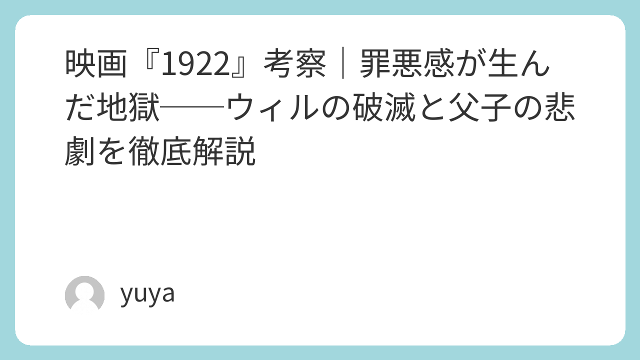 Netflixオリジナル映画『1922』は、スティーヴン・キング原作のノベラを映像化した心理ホラーであり、極めて静かで不気味な“罪の物語”です。派手な演出やジャンプスケアよりも、主人公ウィルが犯した「取り返しのつかない罪」と、それが徐々に精神を蝕む過程を徹底して描く点が、多くの視聴者を魅了しています。