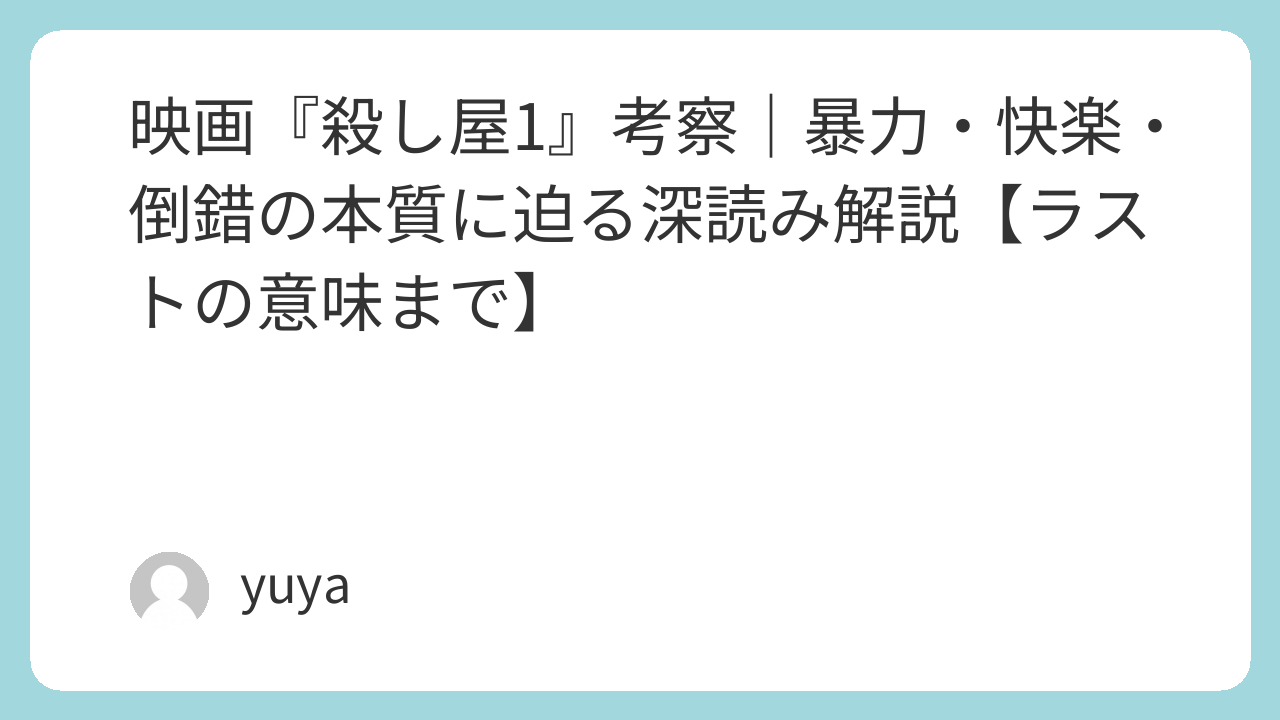 「殺し屋1」は暴力映画として語られることが多いですが、実はテーマは非常に哲学的です。