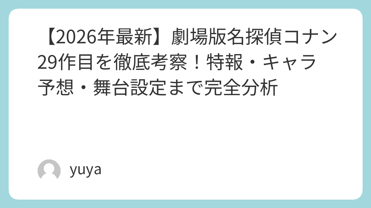 【2026年最新】劇場版名探偵コナン29作目を徹底考察!特報・キャラ予想・舞台設定まで完全分析