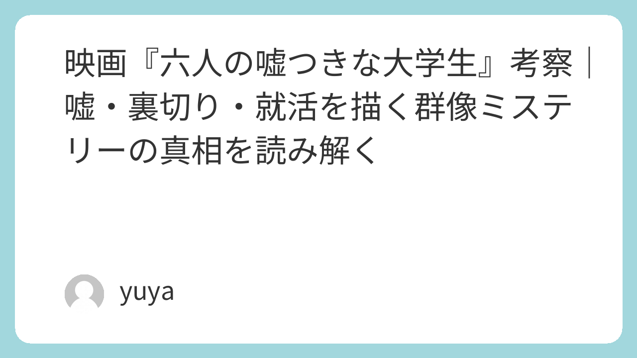 この記事では、「6人の嘘つきな大学生 映画 考察」という検索意図に応え、作品の構造・伏線・テーマを深く読み解きながら、ラストの意味や映画化による演出ポイントまで徹底解説します。