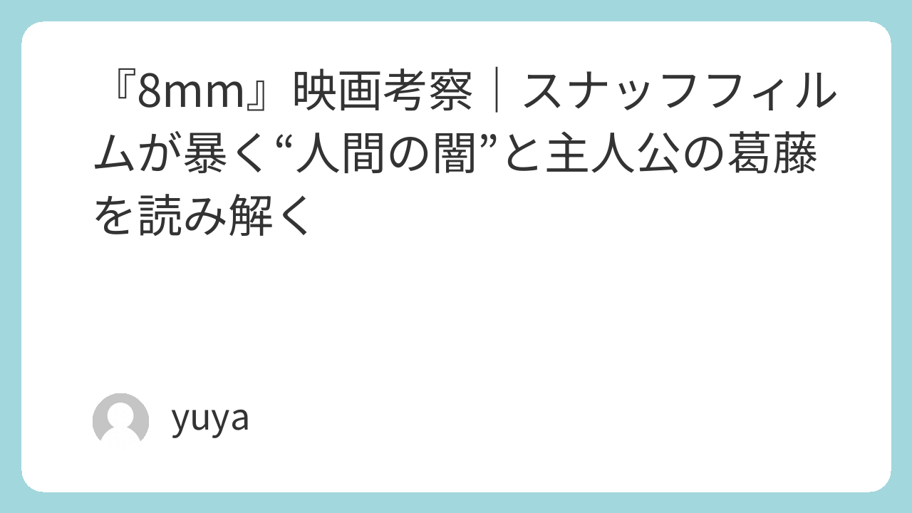 検索キーワード「8mm 映画 考察」の傾向を見ると、スナッフフィルムの倫理性、主人公の葛藤、アンダーグラウンド世界の描写など、観る者が直面する「不快さ」と「問い」の構造を分析する記事が上位を占めています。
