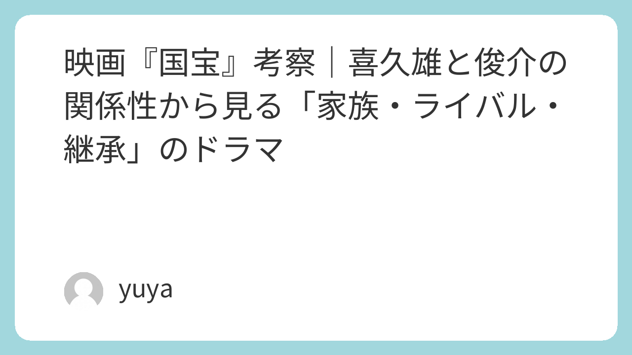テーマ考察② 喜久雄と俊介の関係性に見る「家族」「ライバル」「継承」のドラマ