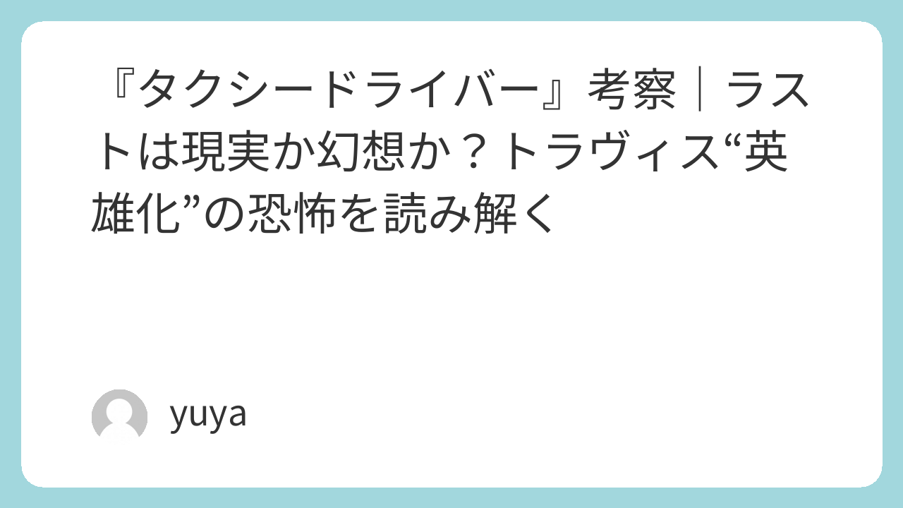 - トラヴィス・ビックルの心理考察:不眠・孤独・自己肥大が暴力に変わる瞬間