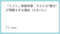 ラスト解釈が割れる最大の理由は、結末が「説明」ではなく「感覚」で閉じられているからです。