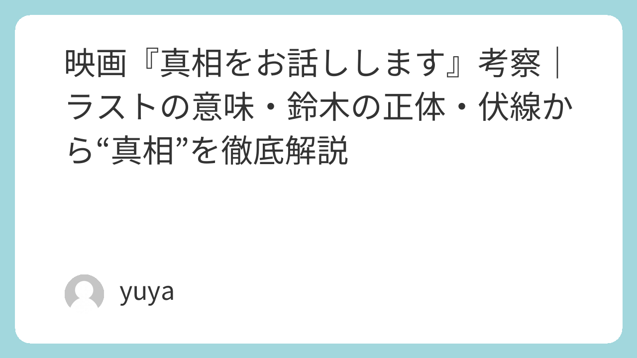 - 映画「真相をお話しします」の伏線を考察|違和感がどのように回収されたのか
