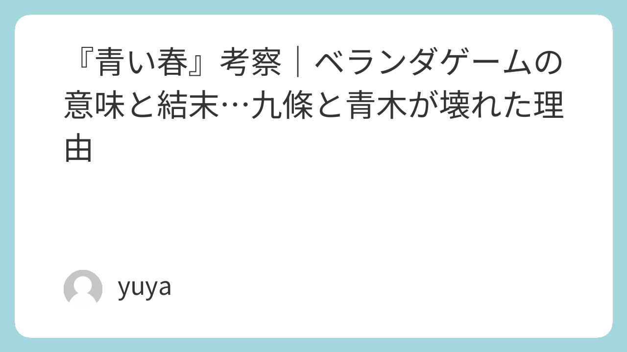 - 【考察】九條と青木の関係性:友情ではなく「憧れ」と「劣等感」の物語