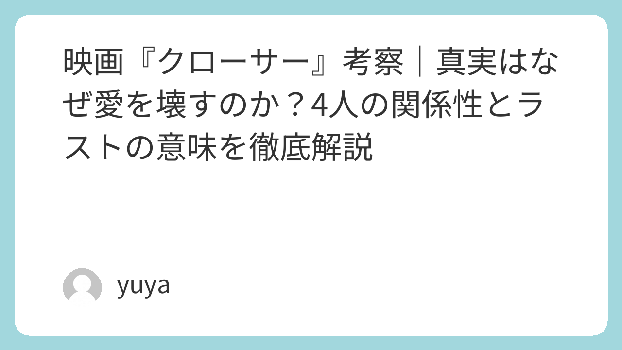この記事では、映画『クローサー』の4人の関係性を整理しながら、“真実と嘘”というテーマ、タイトルの意味、そしてラストシーンの解釈まで丁寧に考察していきます。