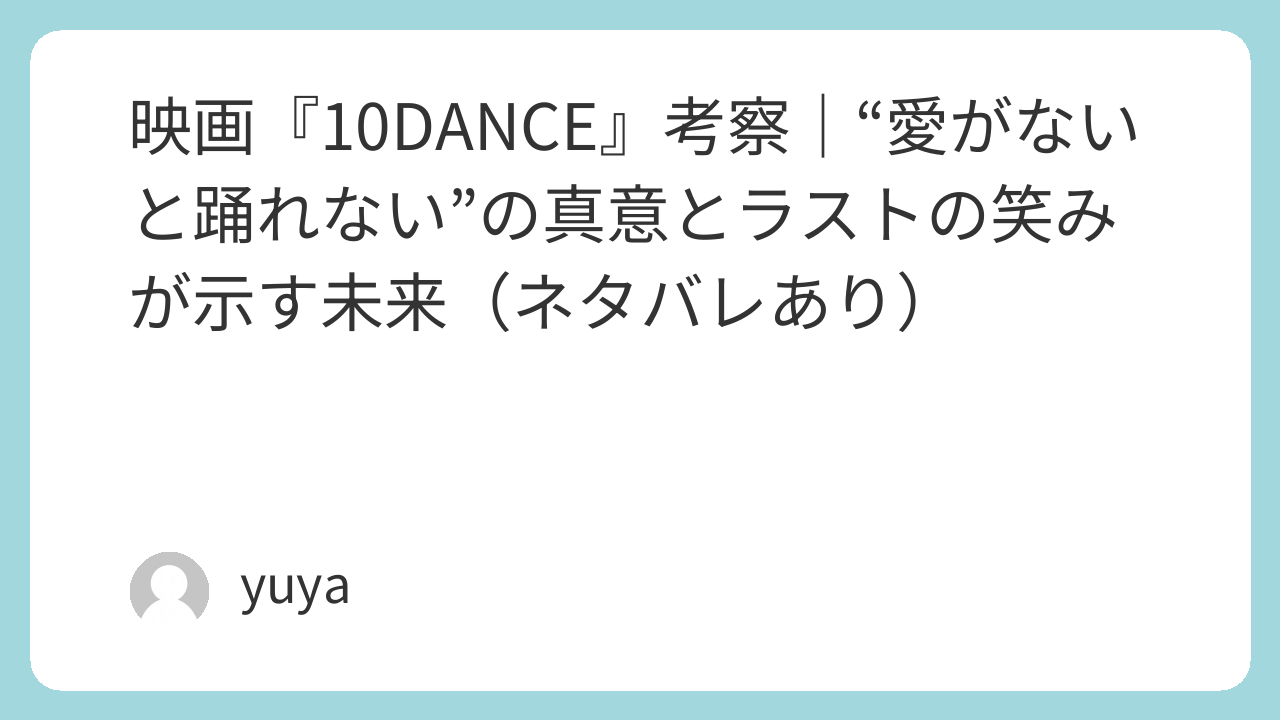 恋が成就したから笑うのではなく、「ここから先は、勝負も人生も“二人の形”で進める」と決めたから笑う。だから観終わった側に、カタルシスと同時に“続きが見たい”未練が残る——この余韻設計が、10DANCEのラスト考察が盛り上がる最大の理由だと思います。