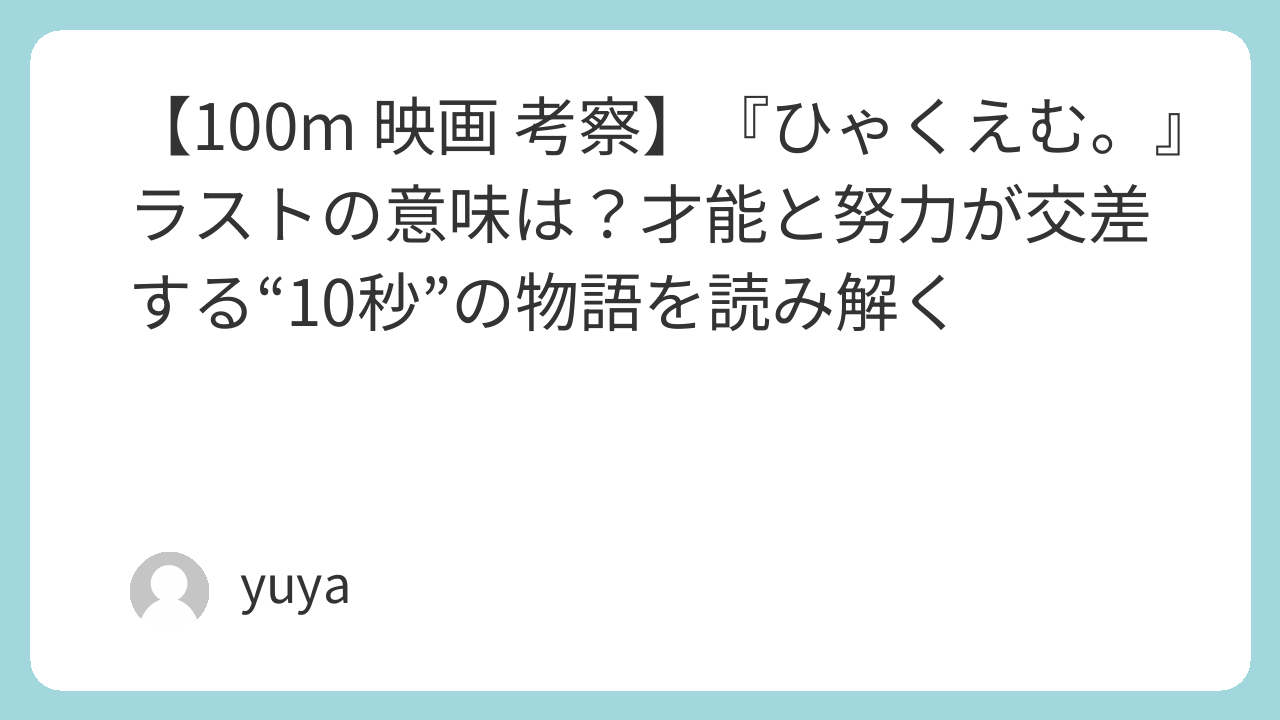 【100m 映画 考察】『ひゃくえむ。』ラストの意味は?才能と努力が交差する“10秒”の物語を読み解く