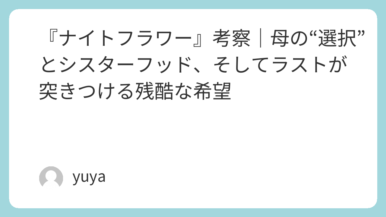 『ナイトフラワー』考察|母の“選択”とシスターフッド、そしてラストが突きつける残酷な希望