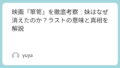 上位記事でもっとも議論されやすいのがここです。作中で“明確な答え”が丁寧に説明されるタイプではないため、観客側が状況証拠から組み立てることになる。