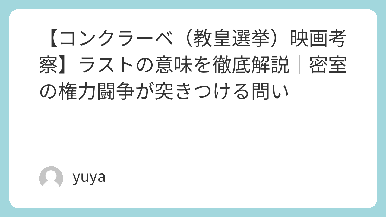 映画『教皇選挙(コンクラーベ)』は、ローマ教皇を選ぶ極秘選挙を舞台にした重厚なミステリーです。神聖な儀式の裏で交錯する思惑、揺らぐ正義、そして衝撃のラスト――。本記事では「コンクラーベ 映画 考察」の視点から、あらすじを整理しつつ、伏線・人物心理・結末の意味までわかりやすく読み解きます。ネタバレに配慮しながら、鑑賞後に語りたくなるポイントを丁寧に解説します。