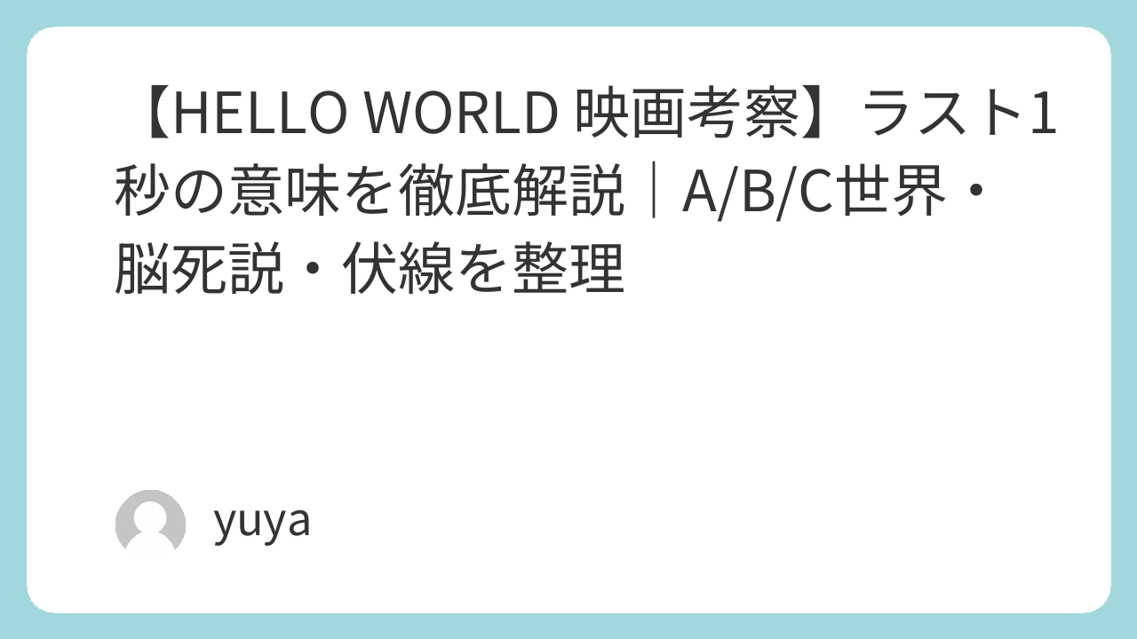 - 『HELLO WORLD』の前提を3分で整理:まず押さえるべき世界観