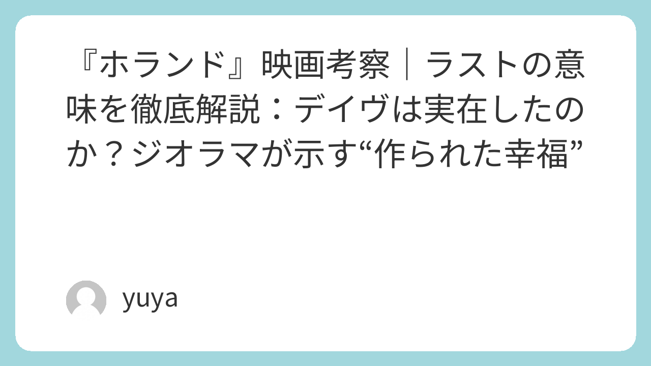 『ホランド』映画考察|ラストの意味を徹底解説:デイヴは実在したのか?ジオラマが示す“作られた幸福”