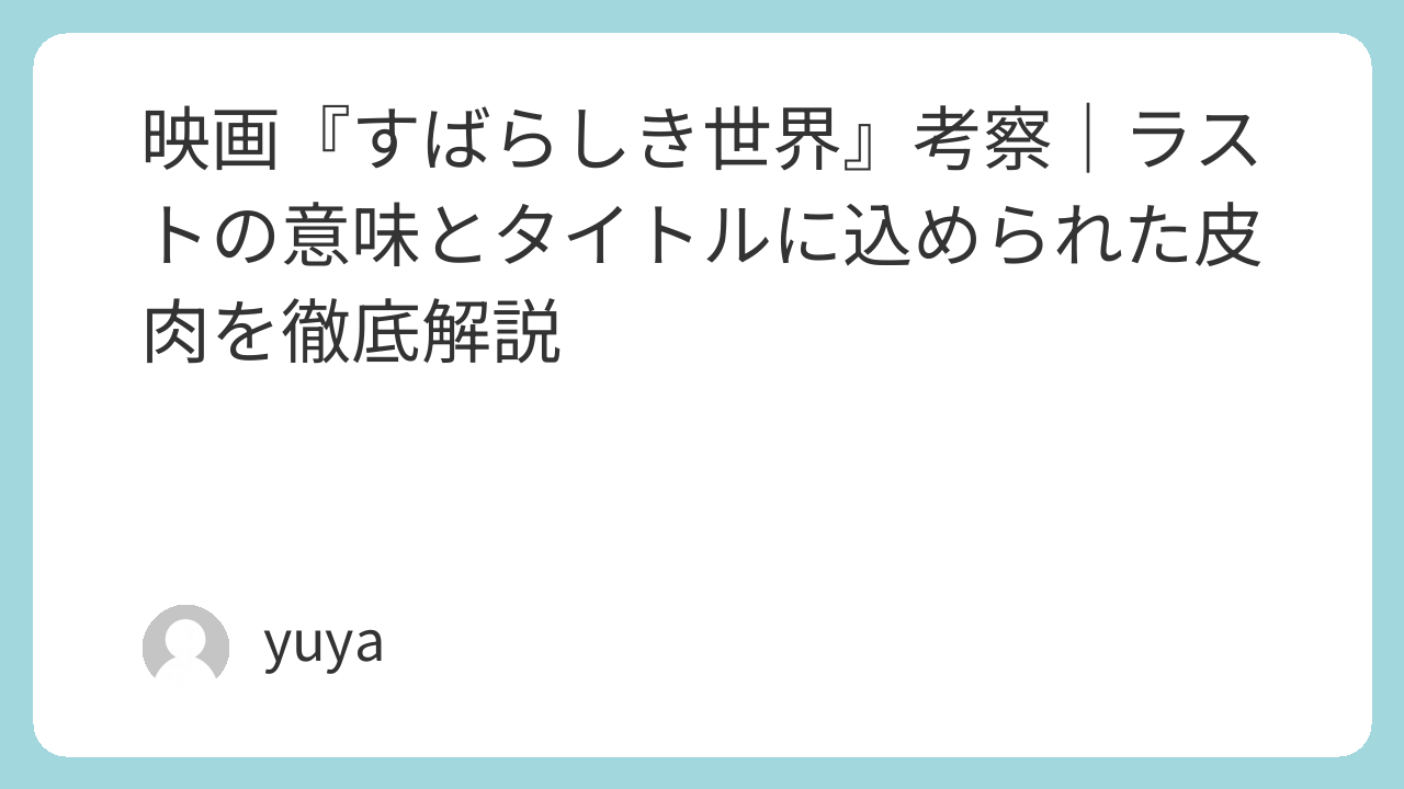 映画『すばらしき世界』は、元受刑者・三上正夫の再出発を通して、私たちの社会が抱える“見えない排除”をあぶり出す作品です。ラストシーンの余韻、タイトルに込められた皮肉、そして取材者の視点が突きつける問いとは何か。本記事では、物語の核心をネタバレ込みで丁寧に読み解きます。