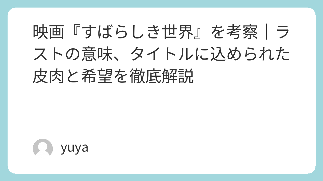 しかし同時に、ラストは三上が何ひとつ得られなかったことを意味してはいないと思います。彼は最後の最後に、利用や打算ではない、ささやかな好意に触れました。社会全体は彼を受け入れきれなかったとしても、三上個人の人生には確かに温かい瞬間があった。そのことを示すからこそ、ラストはただの悲劇では終わらない。『すばらしき世界』という題名は、三上が生きた世界全体を肯定する言葉ではなく、ほんの一瞬でも“世界がすばらしく見えた瞬間”があったことを示す、痛切な逆説なのだと考えられます。