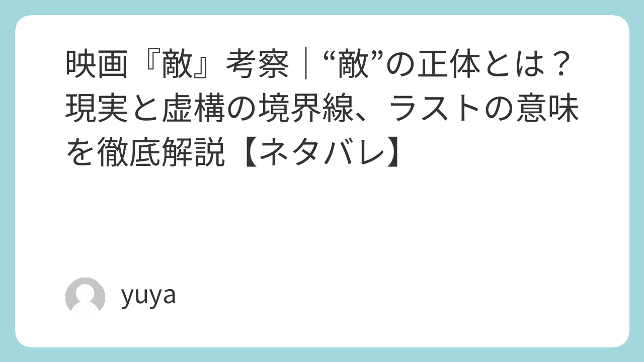 吉田監督自身も、当初は「老い」や「死」のメタファーとして捉えつつ、最終的には“人が生きるうえで必要としてしまう壁/目的”という見方へ変化したと語っています。つまり「敵」は、外敵であると同時に、人生を最後まで“生き切るため”に生まれる内的装置でもある――この二重性こそ、タイトルの核心です。