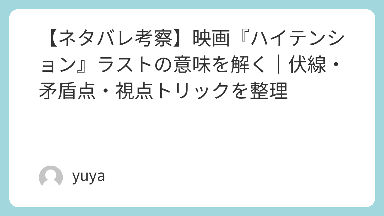 【ネタバレ考察】映画『ハイテンション』ラストの意味を解く|伏線・矛盾点・視点トリックを整理