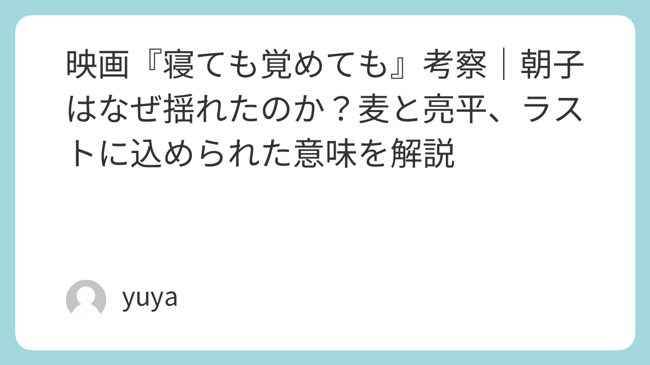 この記事では、タイトルの意味、朝子の心理、麦と亮平の対比、そして賛否の分かれるラストシーンまで、映画『寝ても覚めても』を多角的に考察していきます。