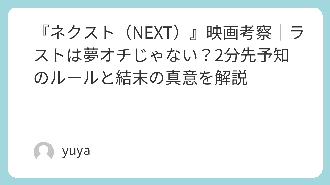 「結局あのラスト、どういう意味だったの?」——映画『NEXT -ネクスト-』を観たあと、多くの人がここで引っかかります。