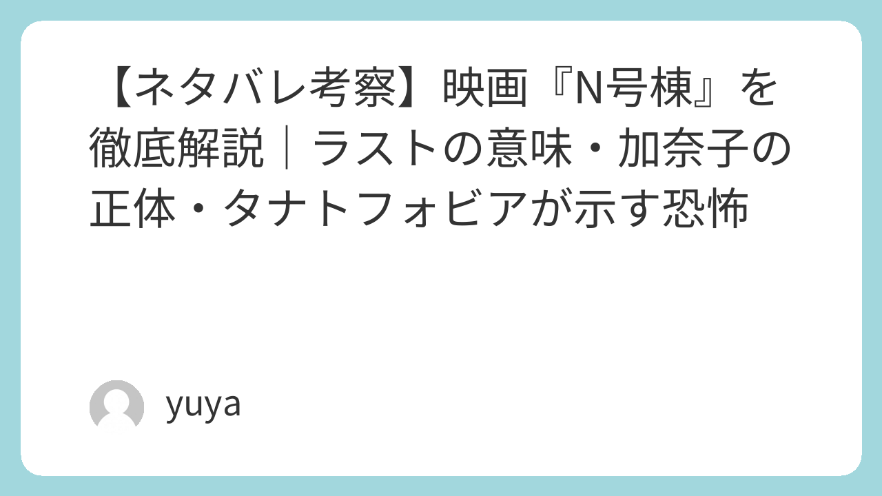 『N号棟』は、実話モチーフ・団地という閉鎖空間・タナトフォビアという個人の病理を重ね、**怪異と心理の境目を意図的に曖昧化した“考察型ホラー”**です。