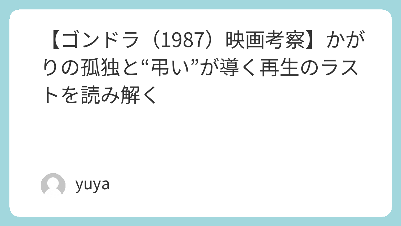 いま刺さる理由は明確です。分断、孤立、過剰な可視化の時代に、『ゴンドラ』は「説明しすぎないこと」で人の痛みをすくい上げる。しかも現在は、同名の別作品(2024年日本公開のドイツ=ジョージア映画『ゴンドラ』)が存在するため、検索時には情報が混在しやすい。だからこそ1987/1988版を明示して読むこと自体が、深い考察の第一歩になります。
