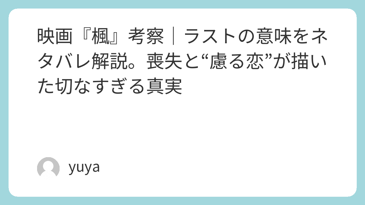 映画『楓』考察|ラストの意味をネタバレ解説。喪失と“慮る恋”が描いた切なすぎる真実