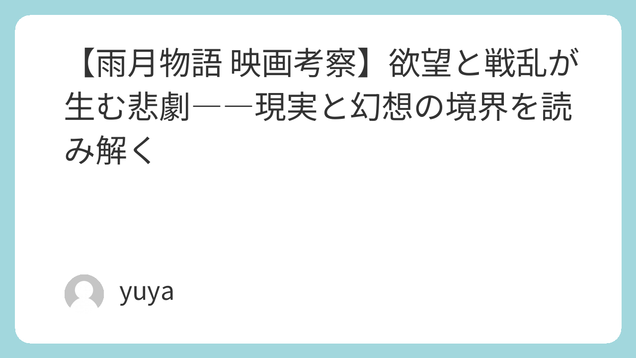 『雨月物語』の芯は、実は男性の冒険ではなく、女性が引き受ける代償です。宮木は生活倫理の象徴であり、阿浜は戦乱の暴力が女性の身体に集中する現実を体現し、若狭は男性欲望が作る“理想化された女性像”の危うさを示します。