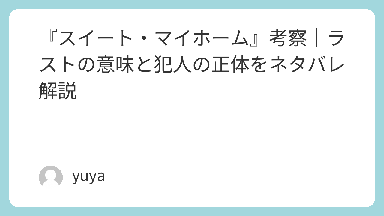そして最終的に最も残酷なのは、暴力が“特別な怪物”によってもたらされるのではなく、ごく普通の家庭の内部で再生産されてしまうことです。だからこの映画は、観終わった後に「怖かった」で終わりません。理想の家、理想の家族、守りたいという気持ち、そのどれもが私たちにとって身近だからこそ、『スイート・マイホーム』は観客に「あなたの家も本当に安全な場所ですか」と問いかけてくるのです。