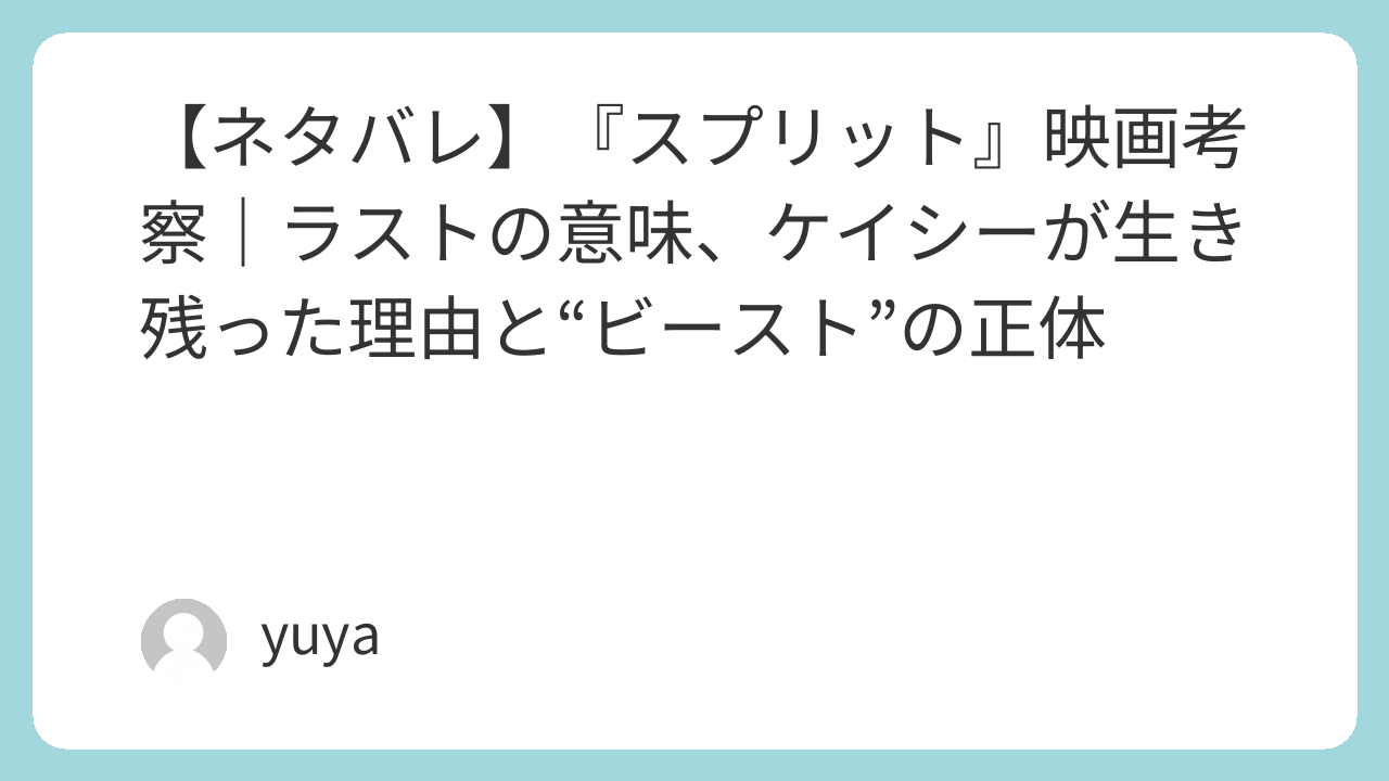 『スプリット』自体も公開当時、メンタルヘルスの観点からはスティグマを助長しかねないという批判を受けました。作品の完成度を評価することと、表象上の問題を批判的に検討することは両立できます。むしろこの二層で読むと、記事の説得力は上がります。
