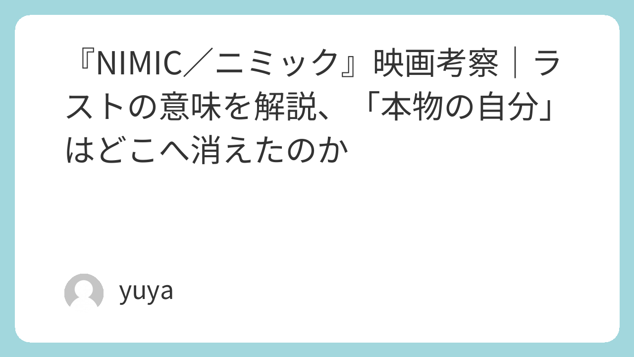 この記事では、タイトルの意味、作中の違和感の正体、そして議論を呼ぶラストまでをつなげて、『NIMIC/ニミック』をわかりやすく考察していきます。※ネタバレあり