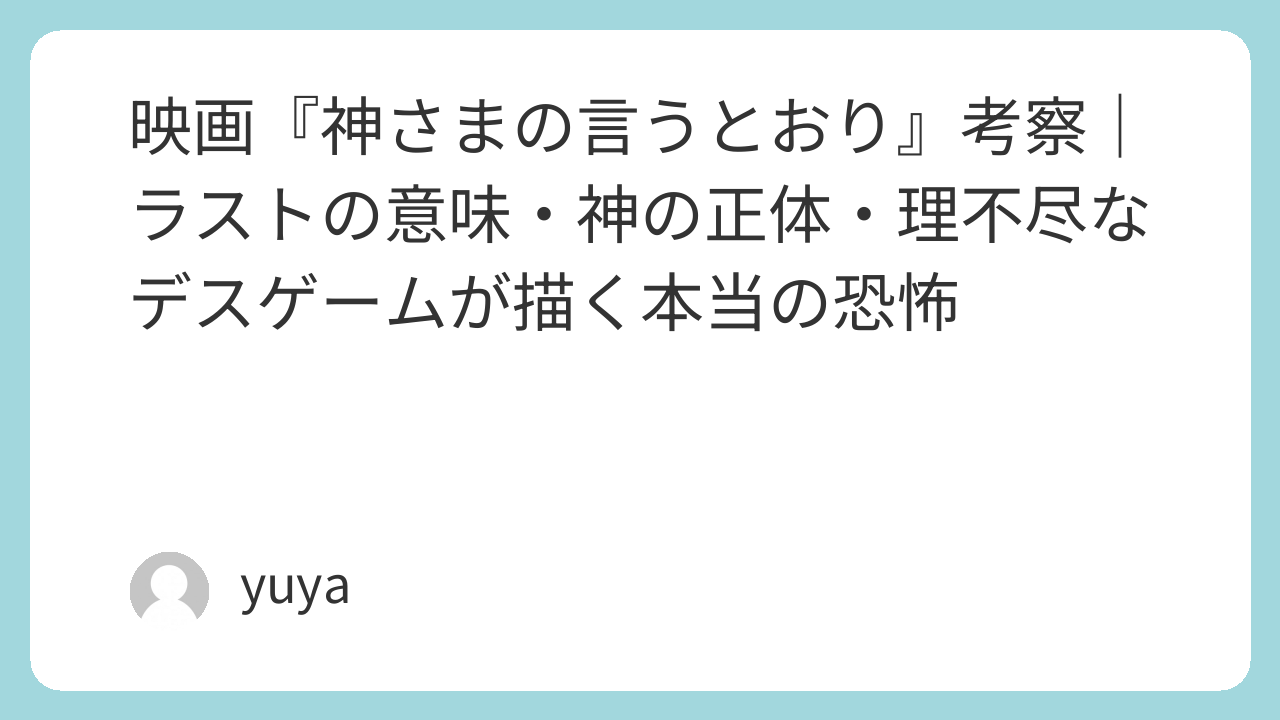 この終わり方は、人によっては消化不良に映ります。しかし考察という視点で見るなら、むしろこの未解決感こそが作品の狙いでしょう。人は意味がわからないものに出会ったとき、強い不安を覚えます。『神さまの言うとおり』は、その不安そのものをラストにまで持ち越すことで、観客に“神のルールの前では人間は理解者ではなく、ただの参加者にすぎない”という感覚を味わわせているのではないでしょうか。
