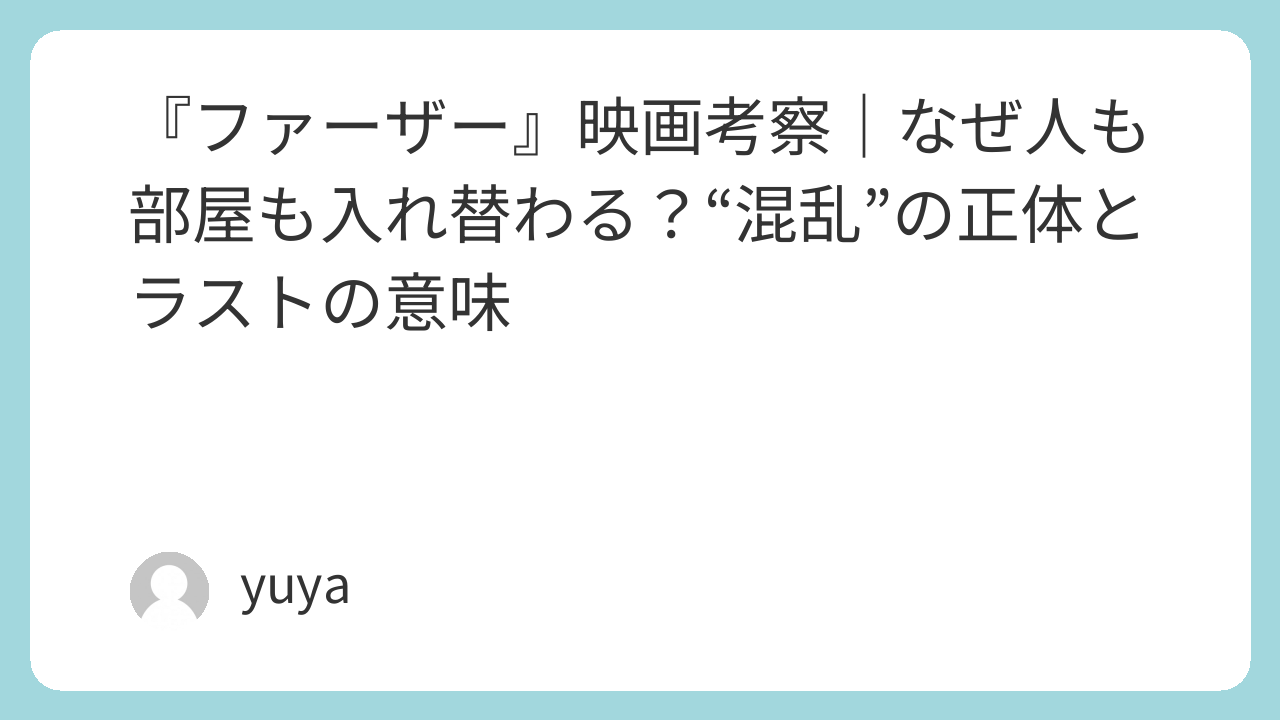 - 『ファーザー』は“ミステリー”じゃない:観客を迷わせる演出の正体