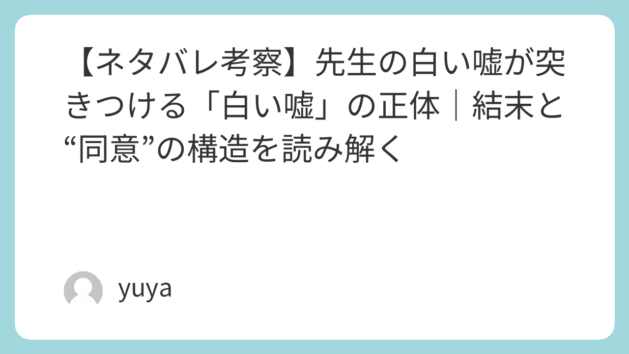 タイトル「白い嘘」の意味を考察(誰の嘘?何を守る嘘?社会の嘘?)