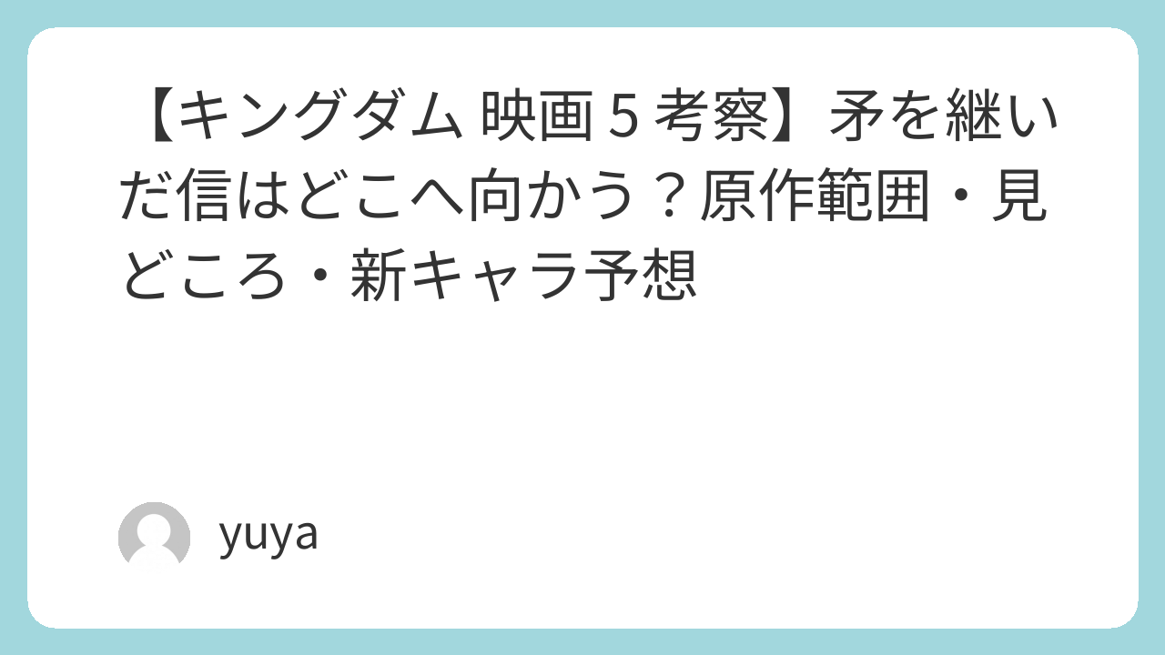 「キングダム 映画 5 考察」で情報を探している方へ。続編は2026年夏公開が告知され、甲冑姿の信と“王騎の矛”を強調したスーパーティザーも解禁されました。 本作は“勝つための強さ”だけでなく、“受け継いだものを背負う覚悟”が大きなテーマになりそうです。この記事では、現時点の公式情報を整理したうえで、ティザーから読み取れる方向性、原作のどこを描く可能性が高いのか(複数説)、新キャラ登場のタイミング、そしてラストの“引き”までを、根拠→予想の順でわかりやすく考察します。