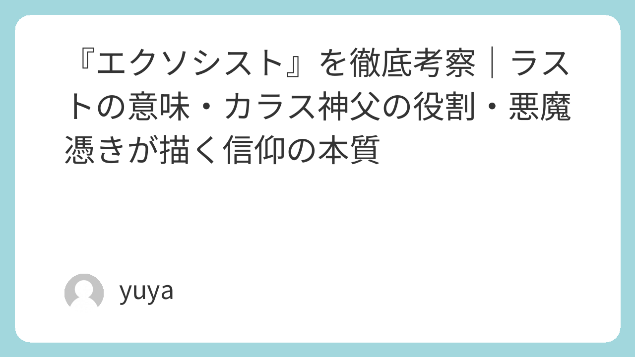 この記事では、『エクソシスト』のあらすじを簡潔に整理しながら、カラス神父を中心にした物語構造、悪魔パズズの意味、ラストの解釈、そして本作が今なお傑作とされる理由までわかりやすく考察していきます。