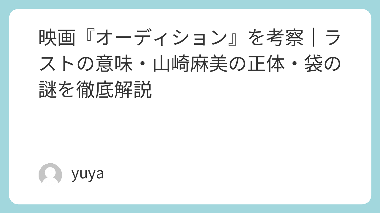 本記事では、映画『オーディション』のあらすじを整理しながら、山崎麻美の正体、青山との関係性、幻想と現実の境界、そしてラストの意味まで詳しく考察していきます。