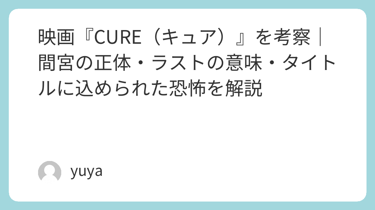この記事では、映画『CURE(キュア)』のあらすじや事件構造を整理しながら、間宮の正体、高部刑事の変化、タイトルに込められた意味、そしてラストシーンの真相まで、ネタバレありでわかりやすく考察していきます。