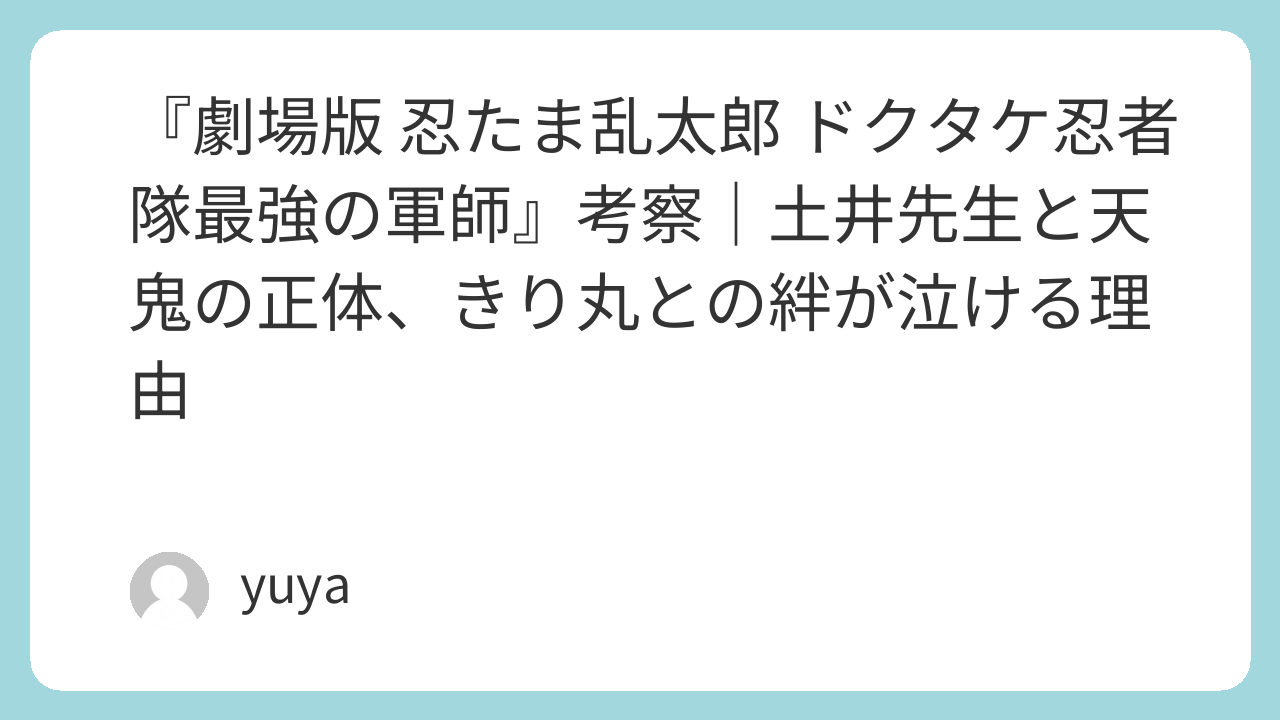 むしろあのポストクレジットは、物語の続きを煽るためというより、『忍たま』の世界は事件が終わっても日常ごと続いていく、というシリーズらしい締め方として見るほうが自然です。本作は土井先生を巡る極めて重い話を描きながら、最後にはちゃんと“いつもの世界”へ帰してくれる作品でした。だからエンドロール後も、次回作の予告というより、忍術学園の日々は終わらないという安心感の演出として受け取るのが、作品全体のトーンにも合っています。