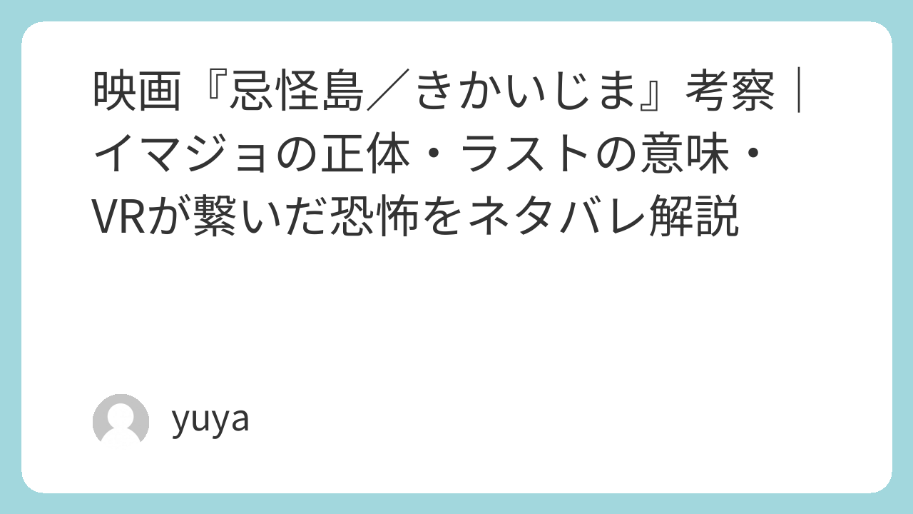ラストがすっきりしないのも、そのテーマに忠実だからです。呪いの根が島の歴史と接続の仕組みにある以上、完全な解決はありえない。リンの存在、イマジョの余韻、現実と仮想の境界の曖昧さ――それらすべてが、「恐怖は終わった」のではなく「形を変えて残った」と示しています。『忌怪島』は、ただ怖い映画ではなく、現代のテクノロジー社会に潜む新しい呪いの形を描いた作品として見ると、ぐっと面白くなる一本です。