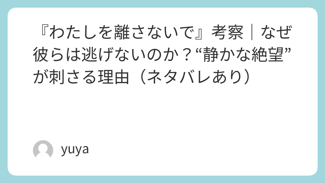 - あらすじ(ネタバレなし)—ヘールシャムで育った3人の関係性