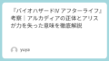 一方で、物語のドラマ性よりもアクションやゲーム的演出が前面に出ているため、シリーズの中でも賛否が分かれやすい作品として知られています。だからこそ、「なぜアリスは弱体化したのか」「アルカディアは何を象徴していたのか」「ラストは続編へどうつながるのか」といった点を整理して見ると、本作の見え方は大きく変わってきます。