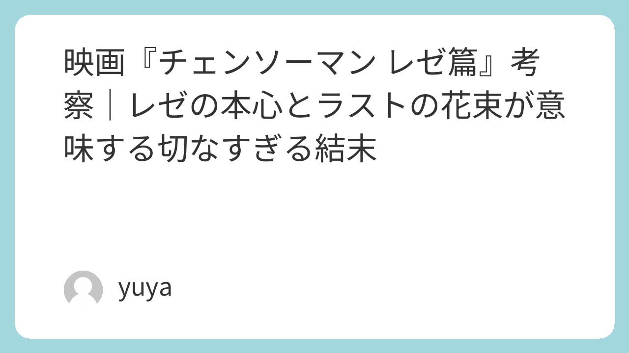 映画『チェンソーマン レゼ篇』が描いていたのは、初恋の美しさそのものというより、“普通を知らない者同士が、ほんの一瞬だけ普通に触れてしまった悲劇”です。レゼはデンジにとって恋の相手であると同時に、もう一人の自分でもありました。だから彼女を失うことは、好きな女の子を失うだけでなく、「自分にもありえたかもしれない人生」を失うことでもあったのです。